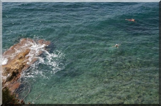 Petite crique de roche vierge, 200m de long et 8 de large avec un faible taux d'occupation.