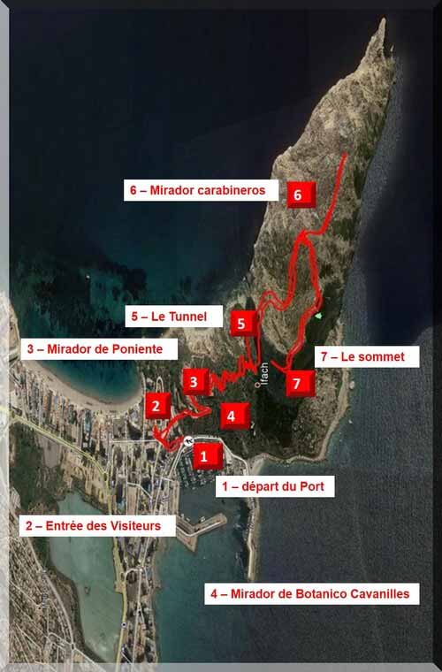 Nous laissons la voiture sur le parking du port où il y a généralement de la place et ainsi nous profitons également de cette partie de la promenade. De là, nous montons vers le parking supérieur et vers l'accès au parc naturel. Bientôt, en suivant la piste, nous arrivons dans le centre d'accueil et l'accès au sentier rouge jusqu'au Rocher.