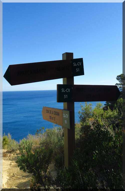 Vous commencerez votre parcours depuis le parking du port de plaisance de Moraira et vous dirigerez vers le nord-est en direction de quelques escaliers qui vous mèneront à la route côtière, Avd del Portet, en cheminant le long de cette route vous irez vers la plage du Portet, et votre promenade se poursuivra jusqu’à la découverte d’un petit port, avant d’emprunter des escaliers de pierre à votre gauche qui vous mèneront jusqu’à la route C/puerto del Sol, vous tournerez à gauche pour continuer à monter un petit tronçon par la C/puerto Andraix et ensuite continuer par la C/puerto de Alcudia au bout de laquelle un panneau vous indiquera que vous entrez dans le chemin SLVa -51, point de départ de la montée vers la falaise du cap.