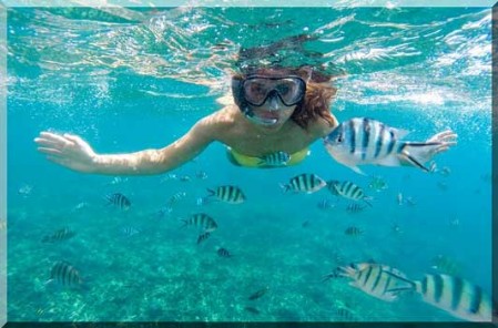 Vous avez votre équipement, masque , tuba et palme et vous partez à la découverte des fonds marins près des côtes et plages et criques accessibles.